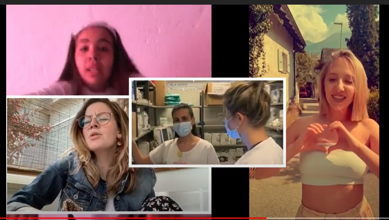la sfida e iniziano a interpretarla ciascuno a suo modo, da casa, con le loro meravigliose sfumature, le loro idee melodiche e le loro bellissime voci. Tutto concitato, video conferenze, file su file, wapp dopo wapp, prova su prova, ma con un grande entusiasmo. Ecco come il digitale puo' essere, alle volte, molto romantico. A cantare sono Marco Zwahler in arte Markeez, 25 anni, Alessandra Wild in arte Wild, 18 anni, Aurrora Batlle, 19 anni, Valentina Inganni in arte Tantovale, 18 anni, Gabriel John in arte Jayon, 16 anni. Poi si aggiungono con altrettanto entusiasmo anche i ballerini che portano enfasi con i loro tributi solisti dalla loro casa e tutto diventa ancora più emozionante: Crystel Hartmeier, 18 anni, Amina Gloor, 18 anni, Vanessa Bianchi, 14 anni, Marika Iannuzzelli, 14 anni, Lisa Pires Lima, 17 anni e