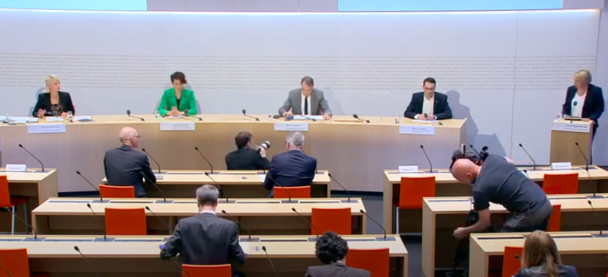 Le autorità federali si sono riunite oggi a Berna per aggiornare la popolazione circa l'emergenza coronavirus in Svizzera. All'incontro informativo hanno preso parte il sostituto di Daniel Koch, Stefan Kuster, il direttore della Segreteria di Stato della migrazione Mario Gattiker, la vicedirettrice dell'Ufficio federale di giustizia Susanne Kuster, la capo sezione dei diritti politici Barbara Perriard e Stephan Brunner della sezione giuridica della Cancelleria federale.