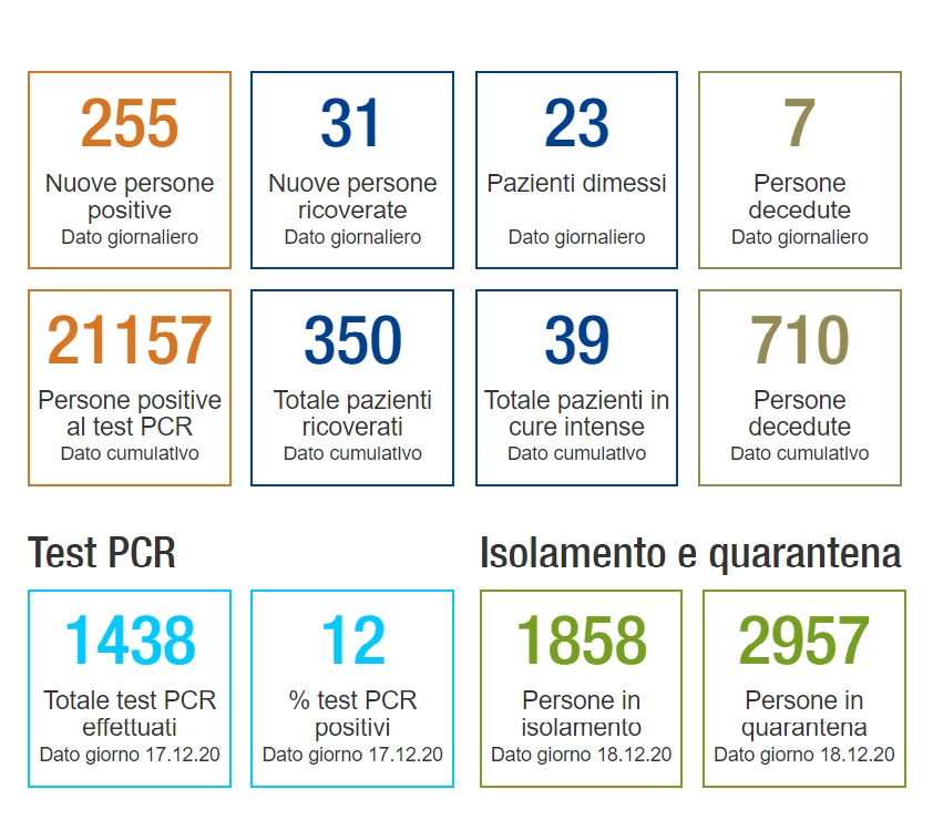 La situazione Covid in Ticino: 255 contagi e 7 decessi