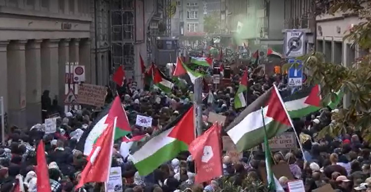 Sabato pomeriggio si è tenuta a Berna una manifestazione a sostegno della Palestina, che ha radunato quasi 2'000 persone. Il corteo si è formato intorno alle 15:00 sul piazzale della stazione ferroviaria e si è poi spostato verso il Palazzo Federale, dove i partecipanti hanno scandito slogan come "Palestina libera" e "Gaza libera".