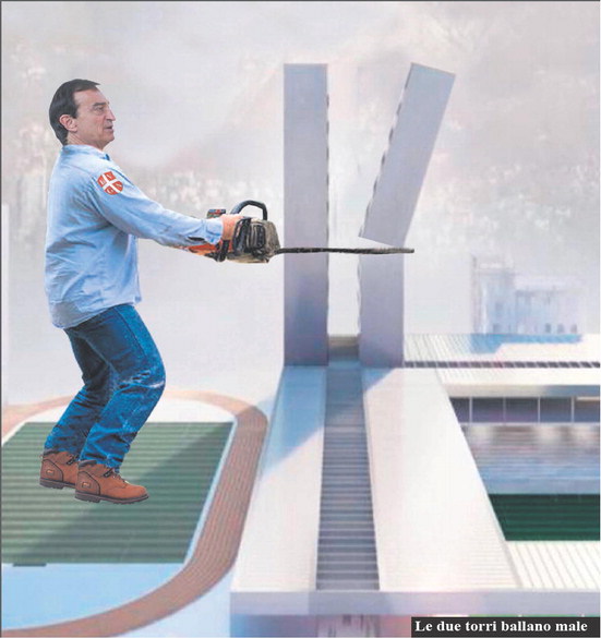 Finalmente arrivano i tagli al megalomane progetto di stadio formato Maracanà in quel di Cornaredo! Come abbiamo letto nei giorni scorsi, si starebbe facendo strada l’idea di rinunciare alle due torri (uella!) in cui si volevano piazzare gli uffici comunali. A parte che non è chiaro in che cosa il nuovo stadio formato Maracanà - che già il Nano ebbe modo di criticare su queste colonne - sarebbe un progetto “pubblico- privato”!