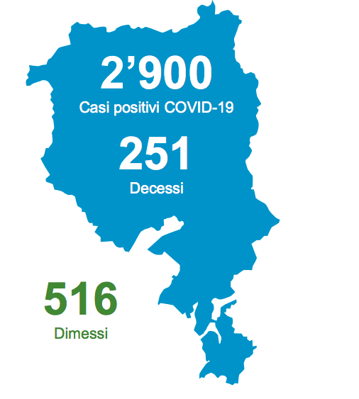 l sito del Cantone ha appena fornito l’aggiornamento dei dati sull’emergenza Coronavirus. Alle 8:00 di oggi, lunedì 13 aprile, si contano 2'900 contagi dall’inizio dell’epidemia e 251