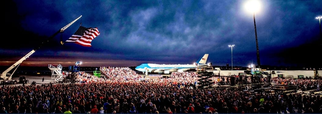 Foto della folla di sostenitori che ieri circondava l'aereo di Trump in Iowa. Ma non ci raccontano che il presidente è SOLO e malandato? Intanto Biden, malgrado