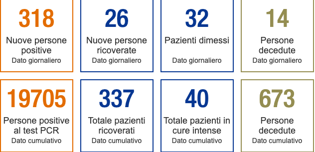 Il sito del Cantone ha appena fornito l’aggiornamento odierno dei dati sull’emergenza Coronavirus. Alle 8:00 di oggi, mercoledì 16 dicembre, si contano 19'705 contagi dall’inizio dell’epidemia e 673 morti.