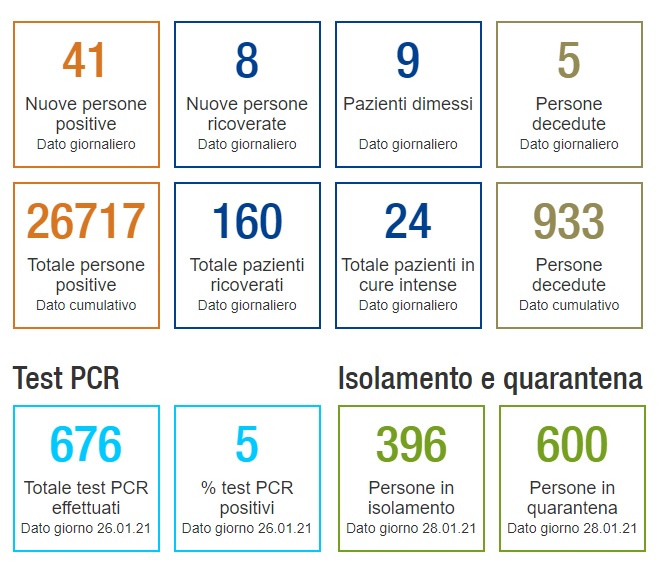 La situazione Covid in Ticino: 41 contagi e 5 decessi