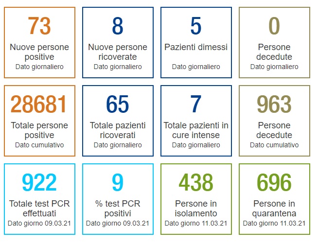 BELLINZONA - I nuovi casi di positività al Covid in Ticino sono 73, uno in più di ieri. Non si registrano, esattamente come 24 ore fa, decessi.