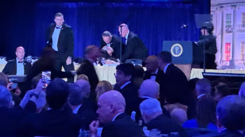 Agenti di sicurezza pesantemente armati sono intervenuti rapidamente e hanno scortato il presidente sul lato sinistro del palco mentre la musica di sottofondo si interrompe mentre altri agenti scavalcano il tavolo e sembrano puntare le armi contro il pubblico. La White House Correspondents' Association (WHCA) organizza questo importante evento politico e mediatico, che riunisce centinaia di persone ogni primavera e al quale Trump partecipava per la prima volta da presidente.